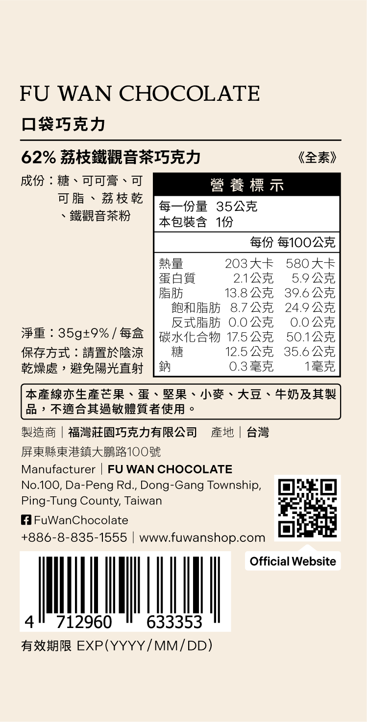 《 海外限量版 》62% 荔枝鐵觀音茶巧克力